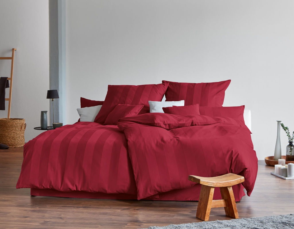 Das breite Streifenmuster der edlen Superbe Satin-Bettwäsche aus reiner Bio-Baumwolle ist ein wahres Fest für die Sinne. Bedingt durch die spezielle Webart wechseln sich alle 8 cm glänzende und matte Breitstreifen ab. Durch Lichtbrechung entsteht so ein erlesenes Wechselspiel aus Hell und Dunkel. Je nach Farbstellung schimmert die Satin-Bettwäsche in tiefen und intensiven oder kühlen und zurückhaltenden Farben. Eine verdeckte Knopfleiste verbirgt die hellen Steinnuss-Knöpfe. Das atmungsaktive und wärmeausgleichende Satin-Gewebe liegt seidenweich auf der Haut und ist hervorragend für das gesamte Jahr geeignet. Hergestellt nach den weltweit anspruchsvollsten Richtlinien für Naturtextilien (IVN BEST) hinsichtlich Ökologie ist die Superbe Satin-Bettwäsche auch für Allergiker geeignet.