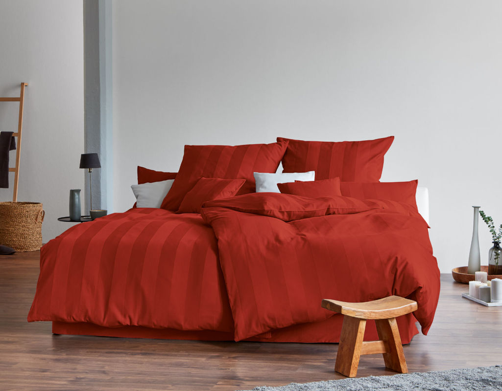 Das breite Streifenmuster der edlen Superbe Satin-Bettwäsche aus reiner Bio-Baumwolle ist ein wahres Fest für die Sinne. Bedingt durch die spezielle Webart wechseln sich alle 8 cm glänzende und matte Breitstreifen ab. Durch Lichtbrechung entsteht so ein erlesenes Wechselspiel aus Hell und Dunkel. Je nach Farbstellung schimmert die Satin-Bettwäsche in tiefen und intensiven oder kühlen und zurückhaltenden Farben. Eine verdeckte Knopfleiste verbirgt die hellen Steinnuss-Knöpfe. Das atmungsaktive und wärmeausgleichende Satin-Gewebe liegt seidenweich auf der Haut und ist hervorragend für das gesamte Jahr geeignet. Hergestellt nach den weltweit anspruchsvollsten Richtlinien für Naturtextilien (IVN BEST) hinsichtlich Ökologie ist die Superbe Satin-Bettwäsche auch für Allergiker geeignet.